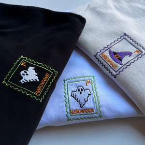Crafted from 100% organic cotton and weighing 300 gsm, this sweatshirt is thick, warm, and perfect for chilly October nights. The cropped relaxed fit gives it a modern, flattering silhouette, making it a minimal yet eye-catching piece for spooky season lovers who want an embroidered design instead of a printed graphic.