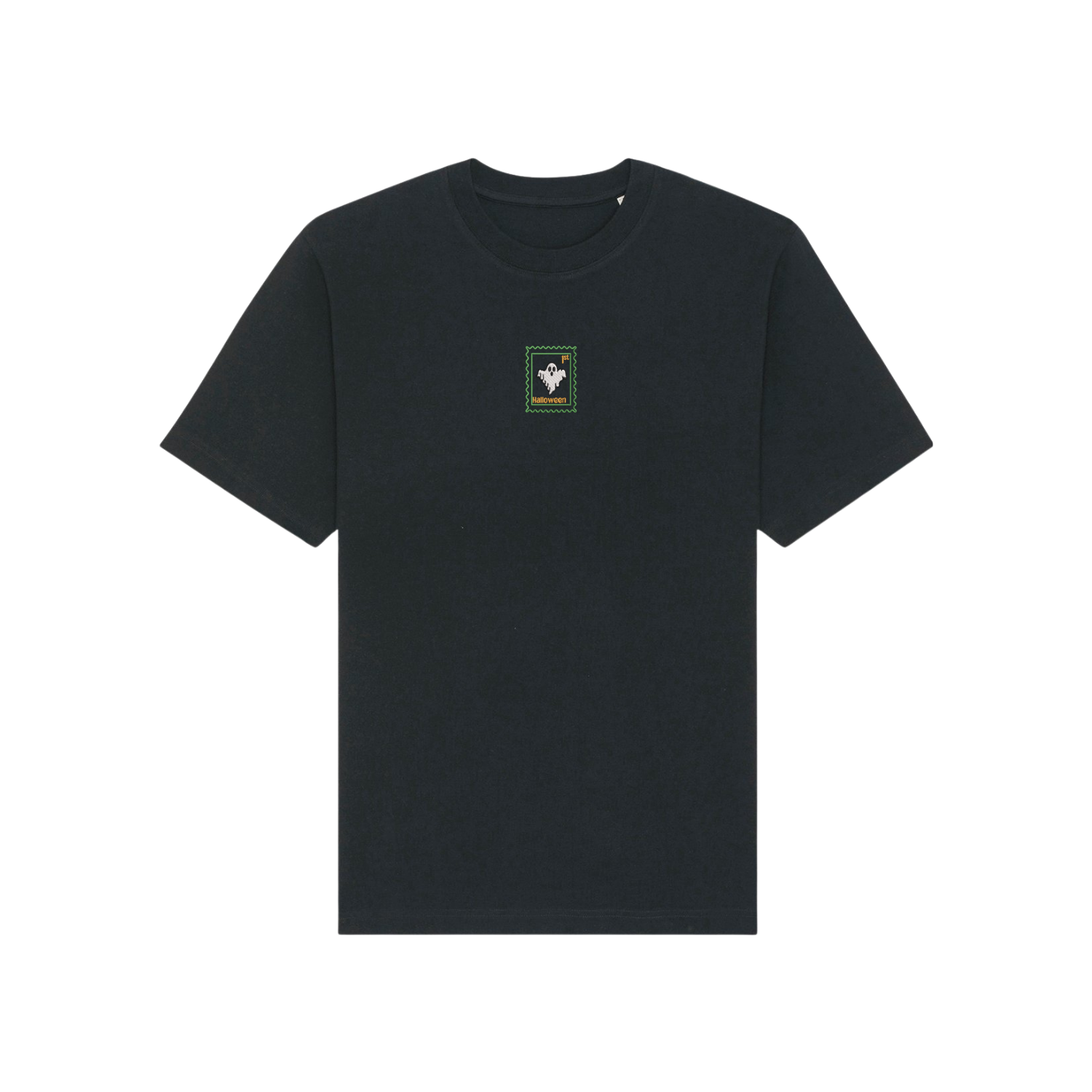 Crafted from 100% organic open-end cotton and weighing 240 gsm, this t-shirt is heavyweight and perfect for layering under a hoodie or jacket during chilly October nights. Its relaxed unisex fit makes it a minimal piece for everyone – from spooky season lovers to ghost fans who want a unique embroidered design instead of a printed graphic.