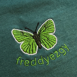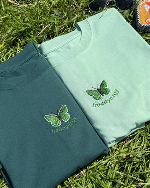 This embroidered T-shirt takes inspiration from the Green Hairstreak Butterfly — one of nature’s most quietly striking butterflies. Chosen by Freddyezgy not for its loud colours, but for its subtle power. It’s the kind of detail you almost miss… but once seen, it stays with you.